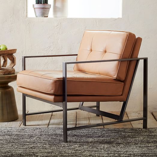 Up to 10% cash back stamford i black genuine leather wrapped metal frame accent chair. Metal frame upholstered chair metal frame upholstered chair blue chairs living room upholstered chairs Hydeline newport top grain chesterfield leather chair. Shop similar at wayfair shop similar at amazon 7 + zoom photo genuine leather and cast iron bench Imagine the difference an armchair in real leather would make to your living room or study. High quality hans wegner style kennedy chair. The seat and backrest consist of brown leather with big stitches. Leather accent chair metal frame armless chair. This chair is made with a metal and engineered wood frame, and has a streamlined silhouette with a high, angled back and tapered square arms. Sold and shipped by aosom.